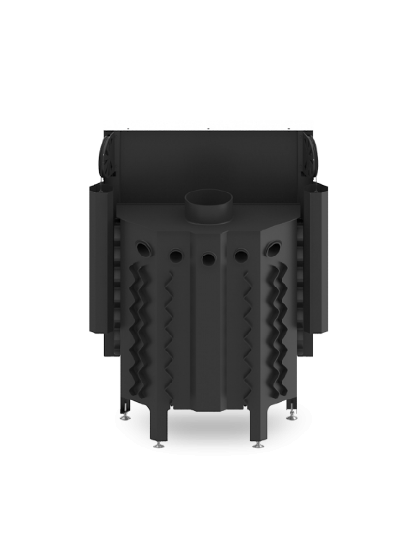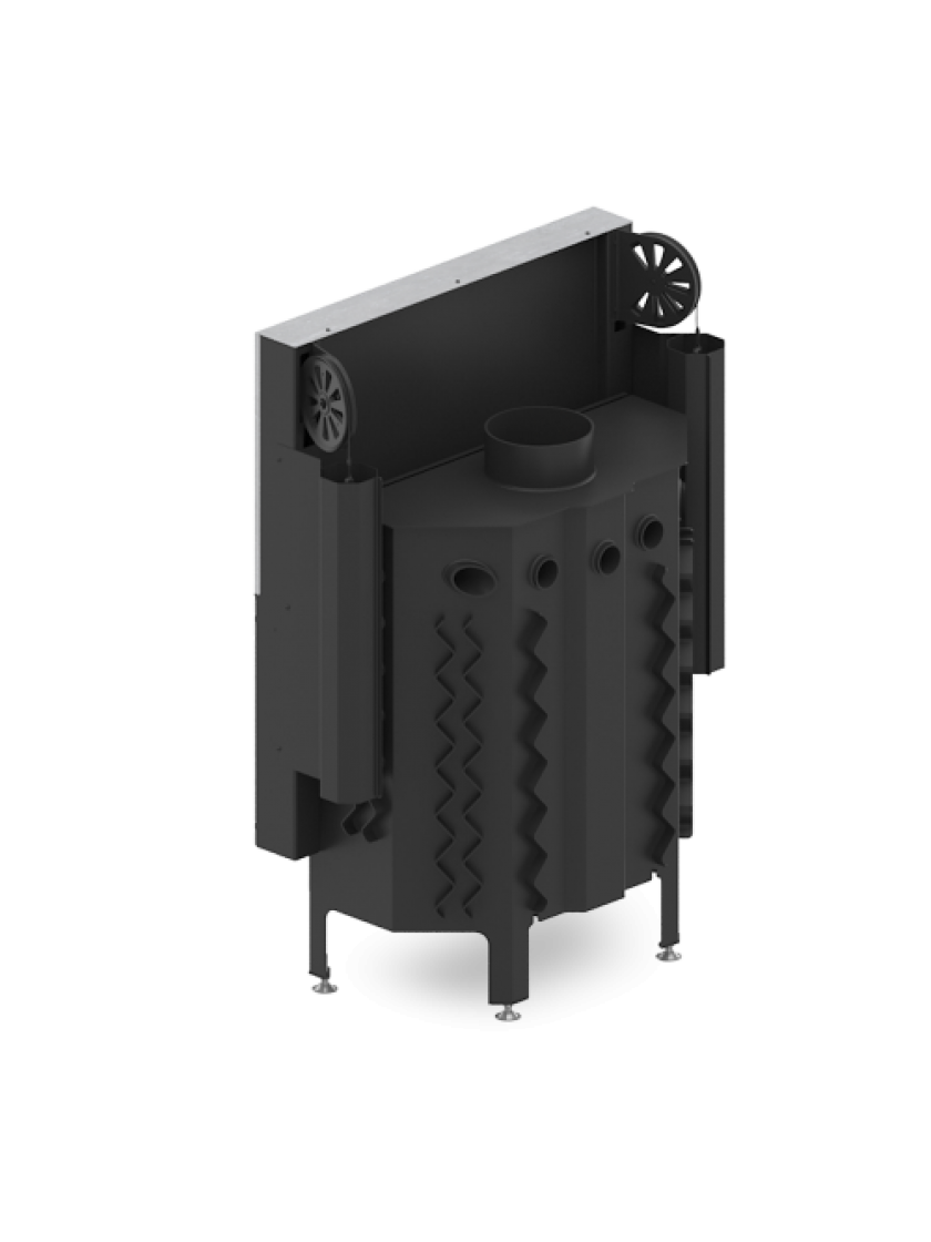 • Задня стінка у камері згорання обладнана системою подвійного допалу чадних газів, що збільшує потужність пристрою і коефіцієнт корисної дії.