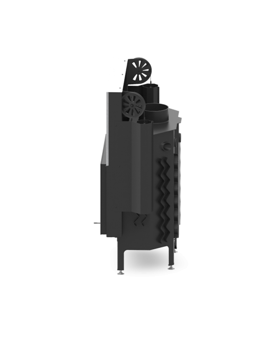 4. Подача повітря у топку здійснюється з вулиці через подвійний повітрозабірник, який не тільки дозволить керувати процесом горіння, а і створить повітряну завісу, яка очищатиме скло.