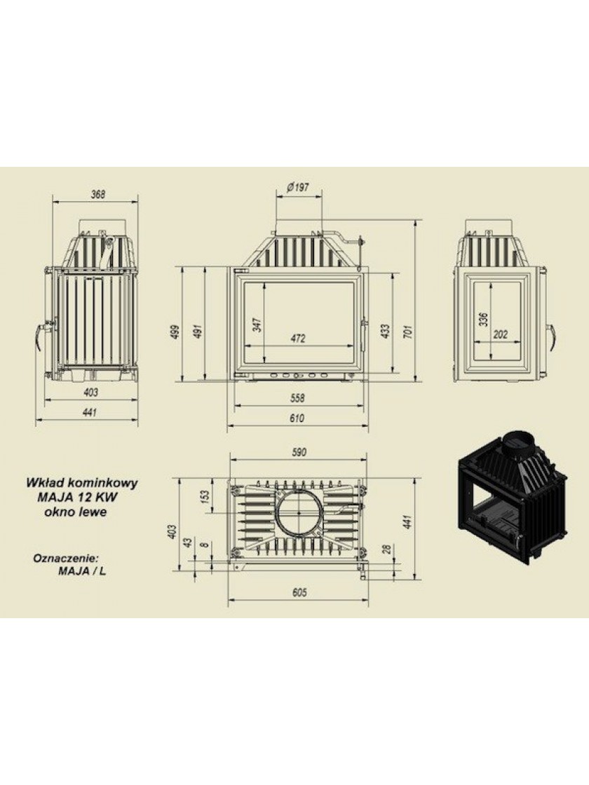 Камінна топка Kratki MAJA 12 ліве бічне скло