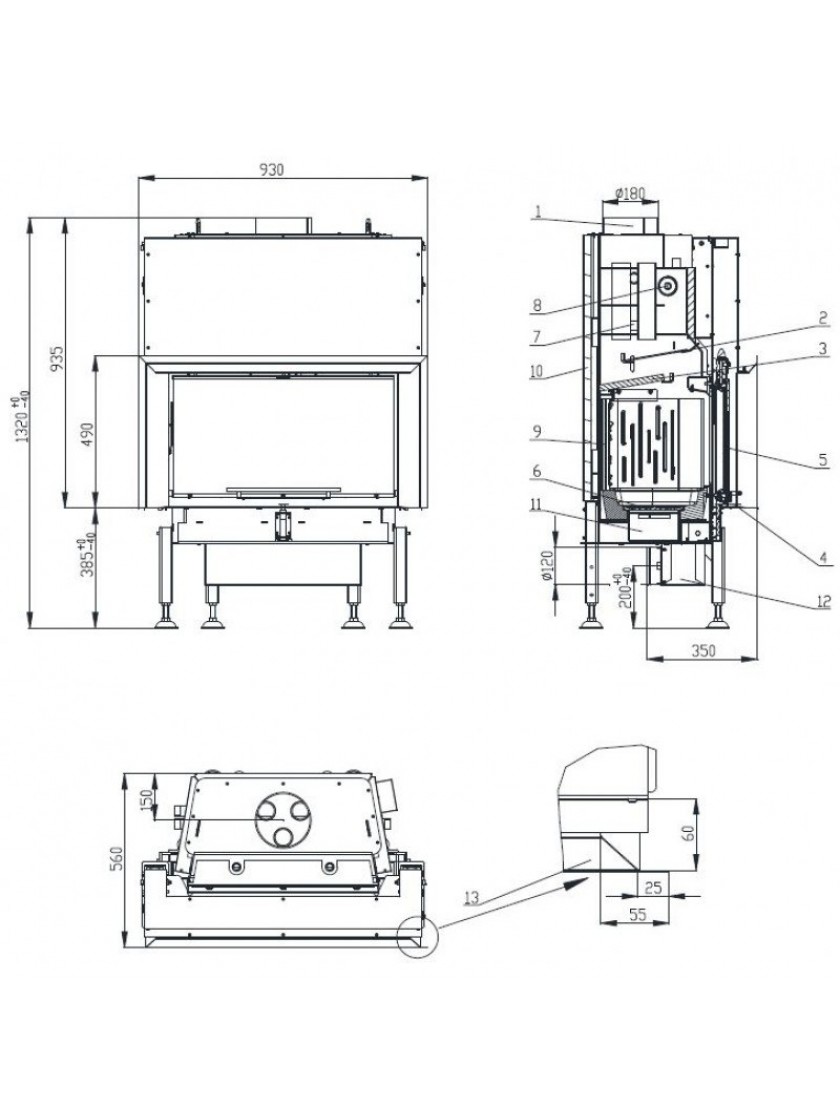 Подача вторинного повітря в топку вирішена конструктивним виступом з нержавіючої сталі