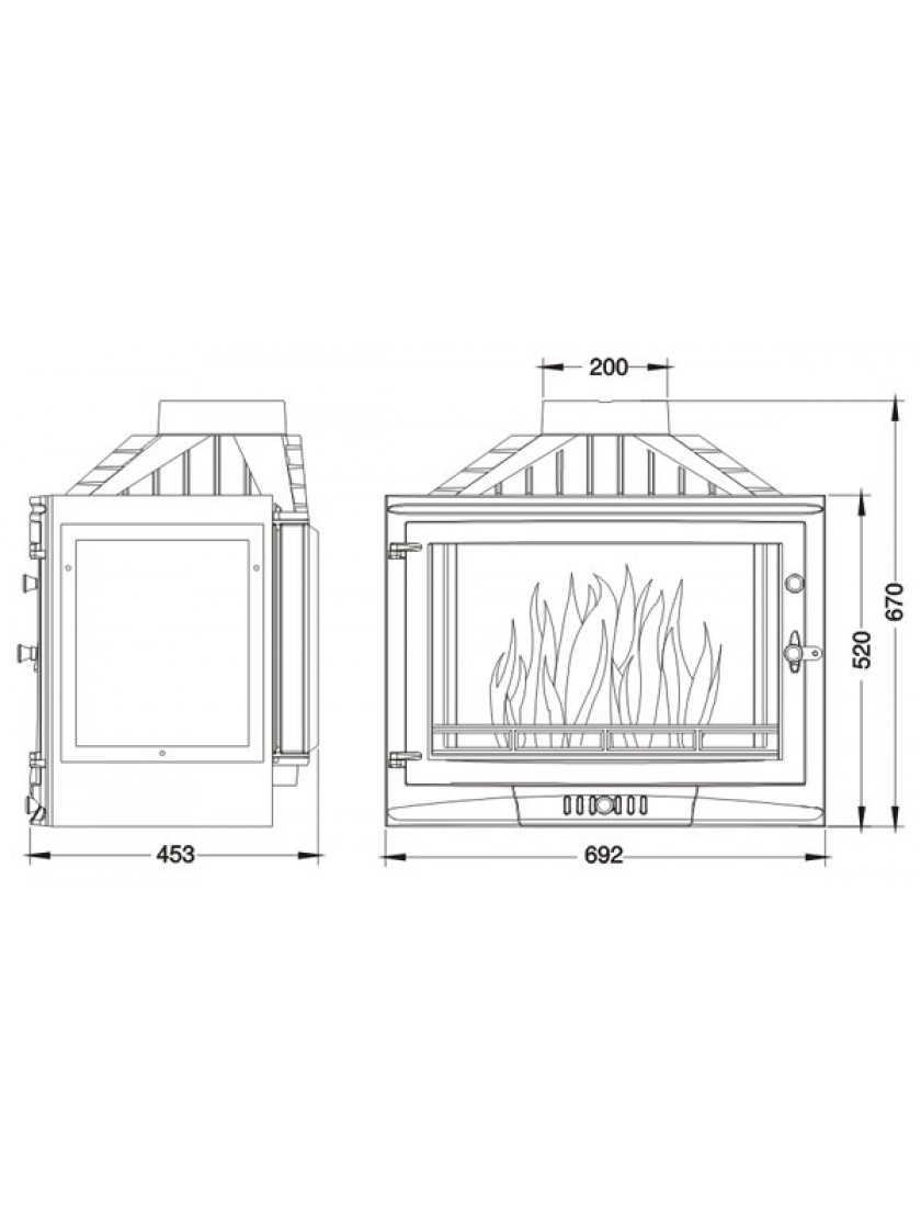 Каминная багниста Uniflam 700 Selenic c шибером праве бічне скло - это камінна топка повністю вироблена з чавуну з прямим склом, має напівкруглу передню рамку, также изогнутые елементи в дизайне. Топка оснащена шиберной заслінкою для регулювання тяги. Она має праве додаткове бічне скло, яке допомагає краще рассматривать и насолоджуватися вогнем краще. Бічне откривание двери.