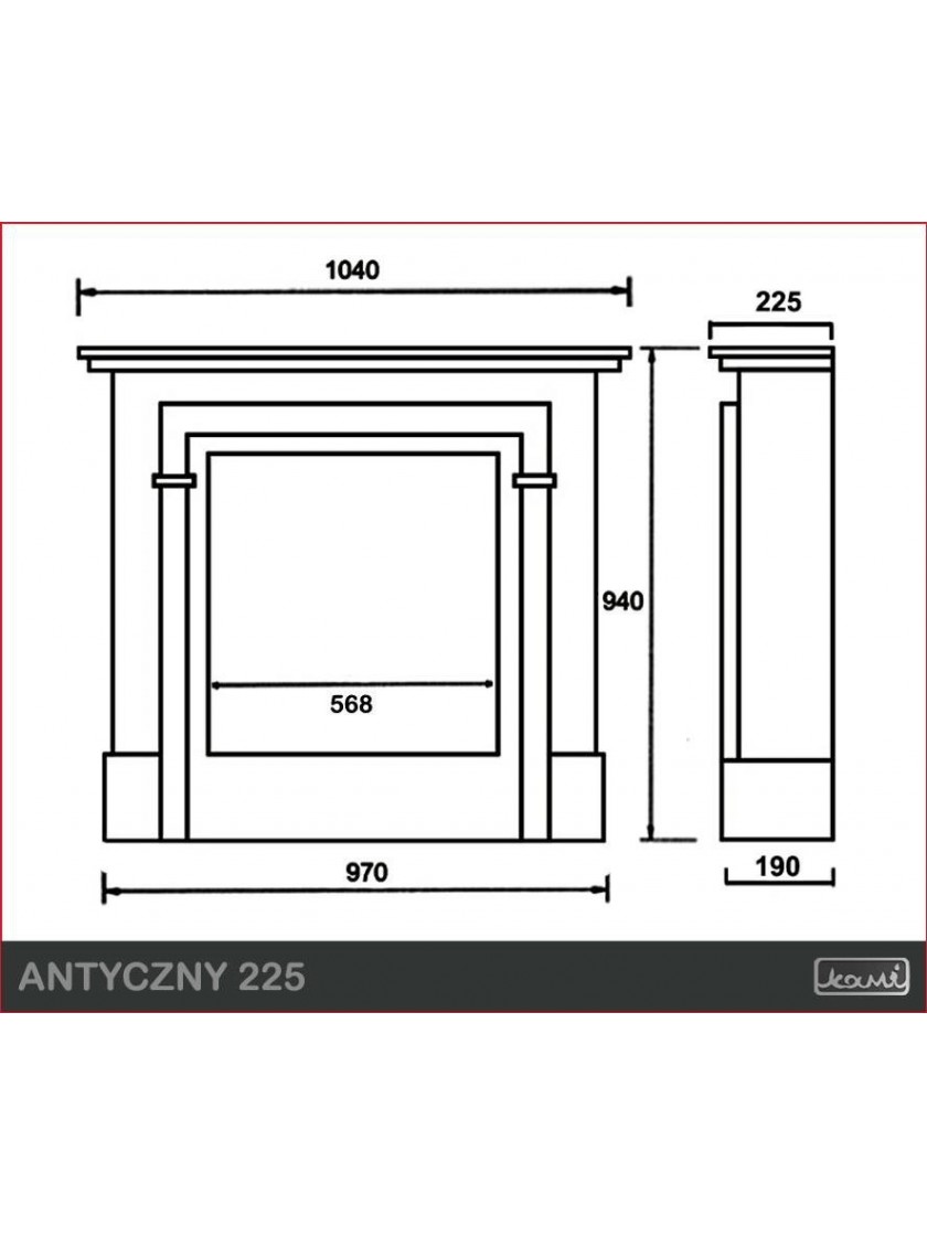Antique 225 - це біокамін, форма якого відсилає до класичного портального каміна . Він чудово впишеться як в традиційний, так і в сучасний інтер'єр. Це окремостоячий біокамін , призначений для розміщення біля стіни. Його характерною особливістю є його глибина - всього 225 мм - тому його можна використовувати і в невеликих приміщеннях. Обудова також є основою, в яку поміщається біопаливна вставка. Додаткове посилення всієї конструкції, а заодно і захист стіни, біля якої розташований біокамін. Його задня панель виготовлена із сталевого листа. Нижня частина готується таким чином, щоб біокамін ідеально прилягав до стіни з плінтусами.