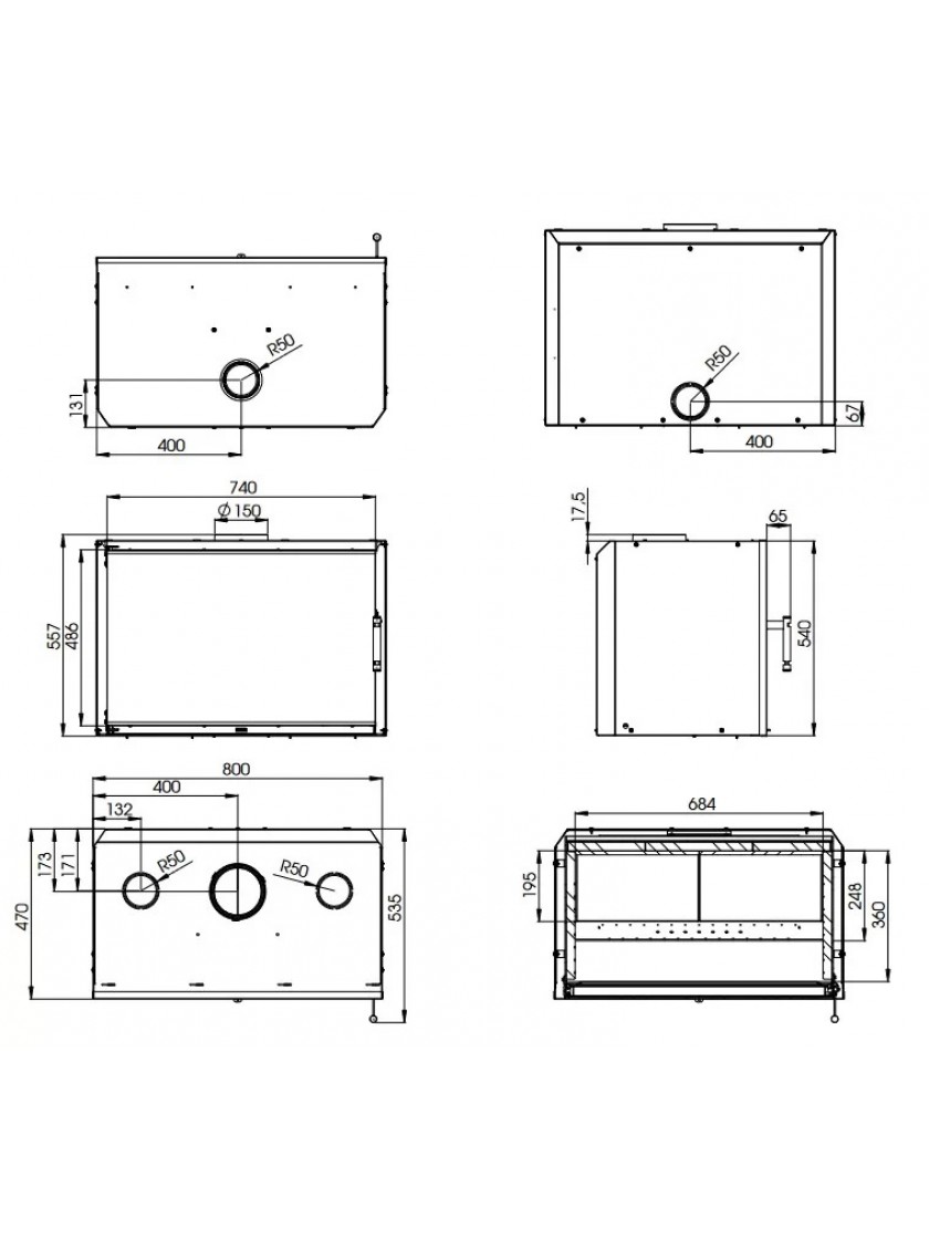 3. Для безпеки камери згорання та уникнення деформації металу – камінна топка CUBO 800 всередині обкладається бетонним шамотом.