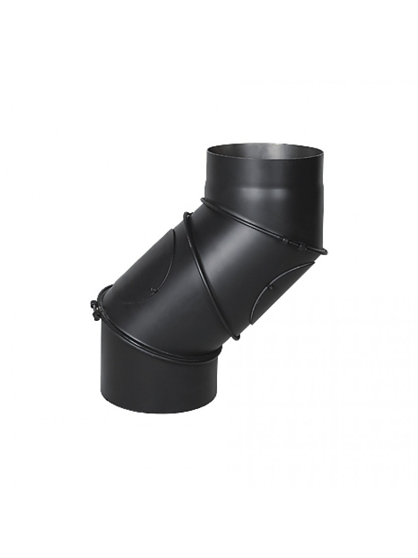Регульоване коліно призначене для підключення камінних топок і печей до димохідної системи. Виготовлене з якісного металу товщиною 2 мм та покрите термостійкою чорною фарбою. Відповідає усім європейським стандартам та забезпечить комфорт у користуванні.