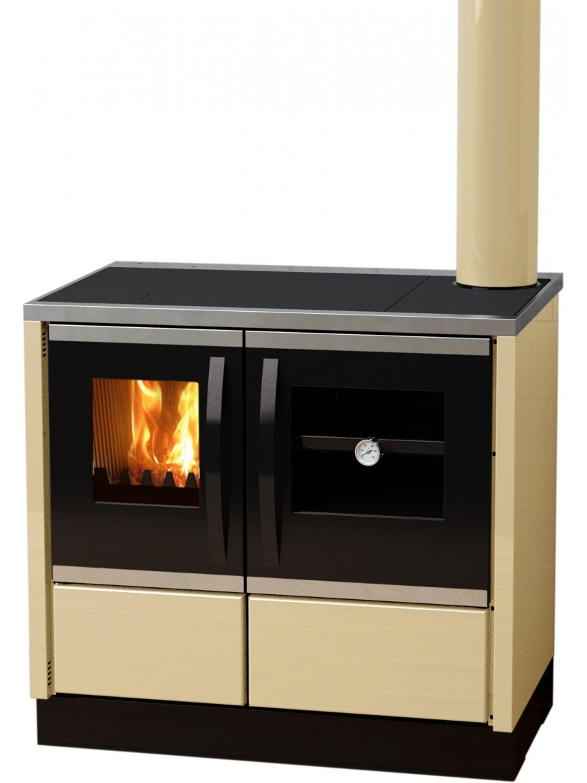 Емальоване покриття надає кухні блиск і обороняє її від корозії. Кухонна піч ROCKY доступна в бордовому, бежевому і сірому кольорах, а також має чорні елементи. Піч підключається до димаря за допомогою патрубка. Вона також включає одно камфорну варильну поверхню для приготування Ваших улюблених страв. Двері багнисті і духовки досить герметичні, виготовляються з чавуну. Завдяки чавунній дверці з регулюванням подання повітря, необхідного для горіння, економиться витрата палива. В комплект з піччю йде емальоване деко і висувний ящик для золи.
