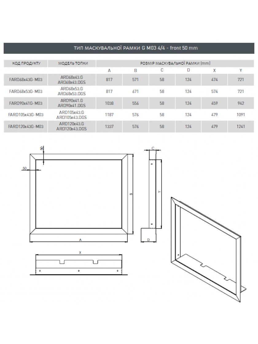 Маскувальна рамка для камінної топки Hitze Ardente ARD105х43 DGS-M03