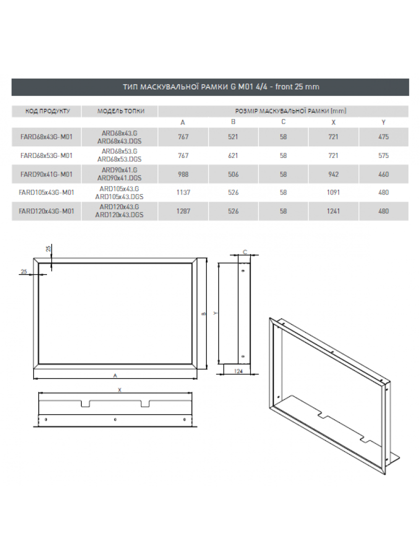 Теги: Маскувальна рамка для камінної топки Ardente ARD90х41G-M01,FARD90х41G-M01,Рамки