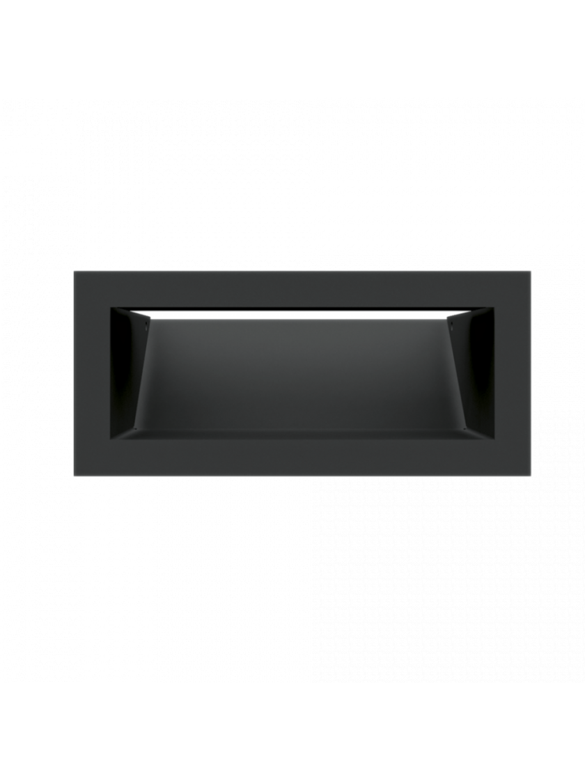 Встановлюється в стіні або в облицювання кожуху каміна. Решітка відрізняється сучасним та мінімалістичним виглядом, а її витягнута форма робить її ідеальною для інтер’єрів, оформлених у сучасному стилі. Завдяки фарбуванню порошковим методом, решітка стійка до механічних пошкоджень і високих температур, а її колір залишається довговічним і незмінним.