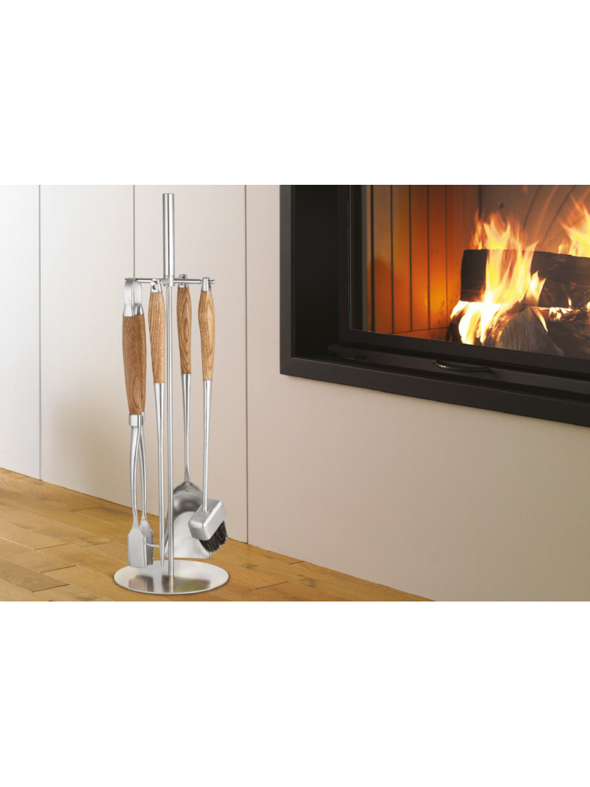 Теги: Набір для каміна на підставці з нержавіючої сталі з дубовими ручками Hansa,Set639,Набори до камінів