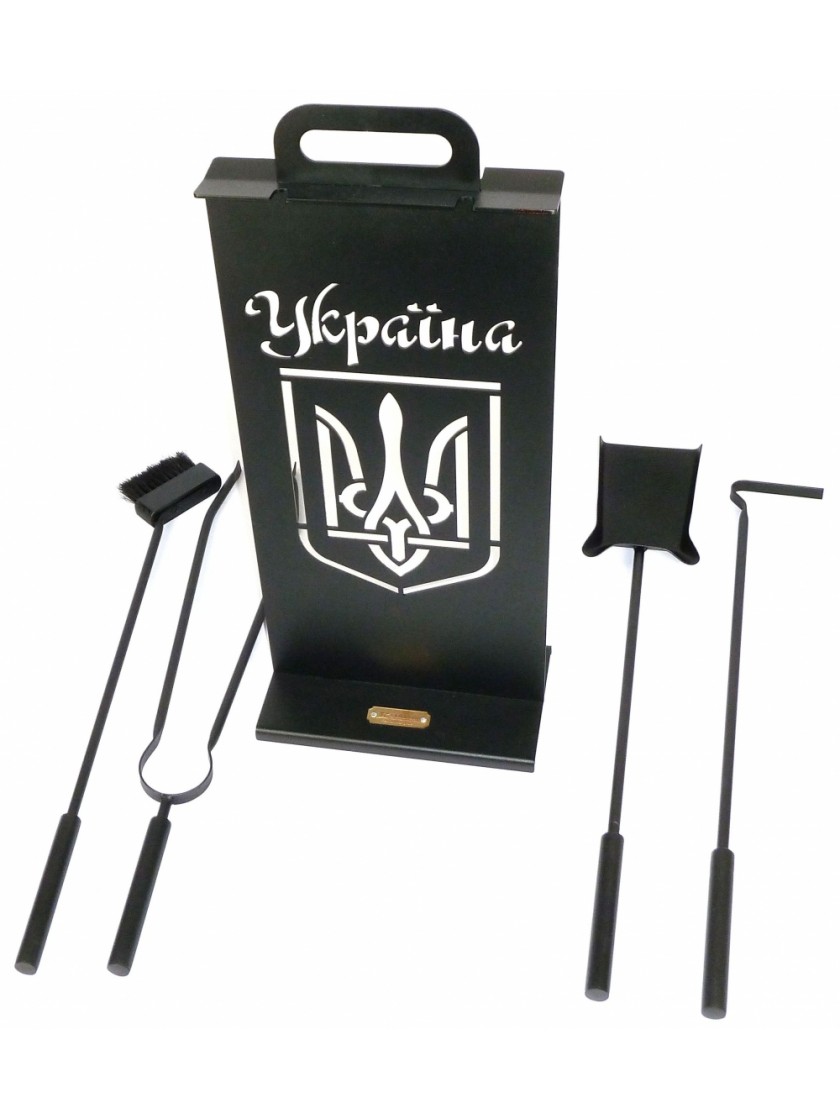 Набір «Україна» містить чотири інструменти для догляду за каміном: коцюбу, щипці, щітку та совок. Вони забезпечують безпечну експлуатацію каміна та легке прибирання.