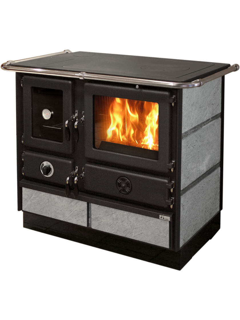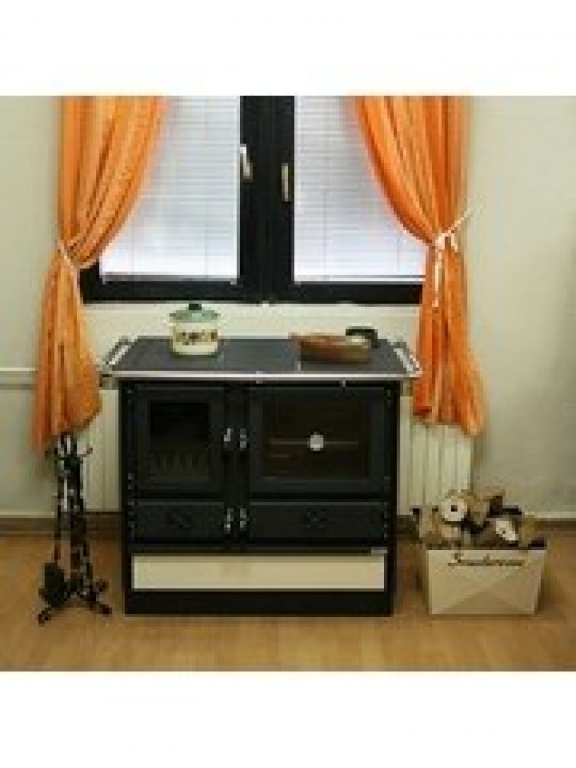 Піч з водяним контуром MBS Thermo Magnum Stone 14 кВт призначена для опалення Вашої кухні та приготування їжі. Її матеріалом є чавун та емальована сталь, яка продовжує термін служби печі та надає їй гарного естетичного вигляду. Дана піч доступна в бежевому, червоному, бордовому кольорах та камінь. Варильна поверхня печі має одну конфорку, а сама піч має ще й шафу для приготування їжі. У комплектацію духової шафи входить деко та датчик температури. Також є ящик для зберігання дров. Дверцята герметично прилягають до топки. Плиту також можна прикривати декоративною кришкою та підключати до димаря за допомогою патрубка.