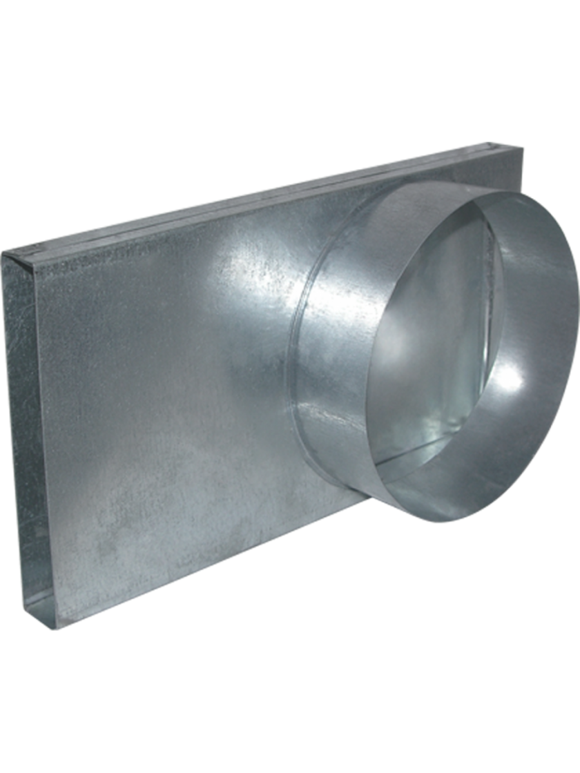 Перехід з підводу повітря ззовні 25х152 мм в трубу ø 125 під кутом 90°.