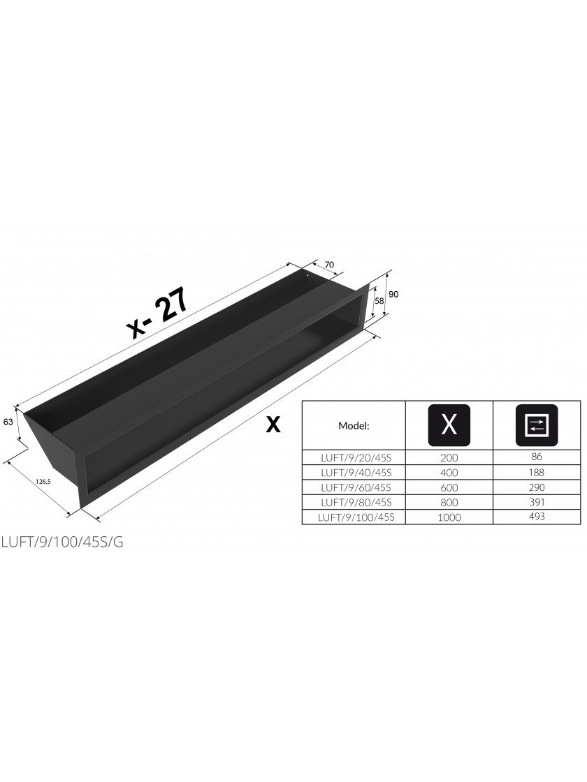 Вентиляційна решітка Kratki LUFT графітова 9х100