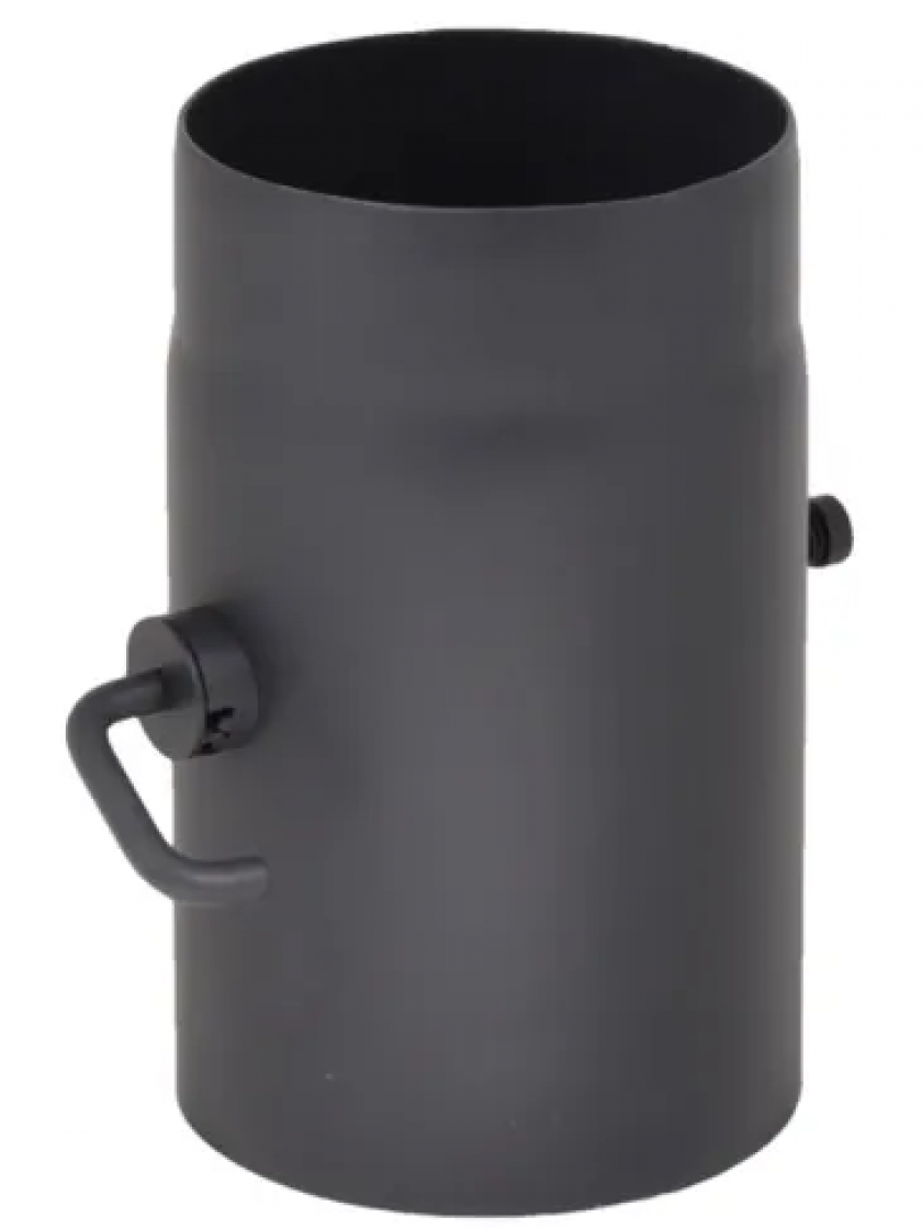 Шибер для димаря з короткою ручкою. Спеціальний вмонтований замок додатково захищає шиберну заслінку від автоматичного її руху. Заслінка використовується як частина елементу для відведення газів від камінів і твердопаливних опалювальних приладів, що працюють без конденсату.