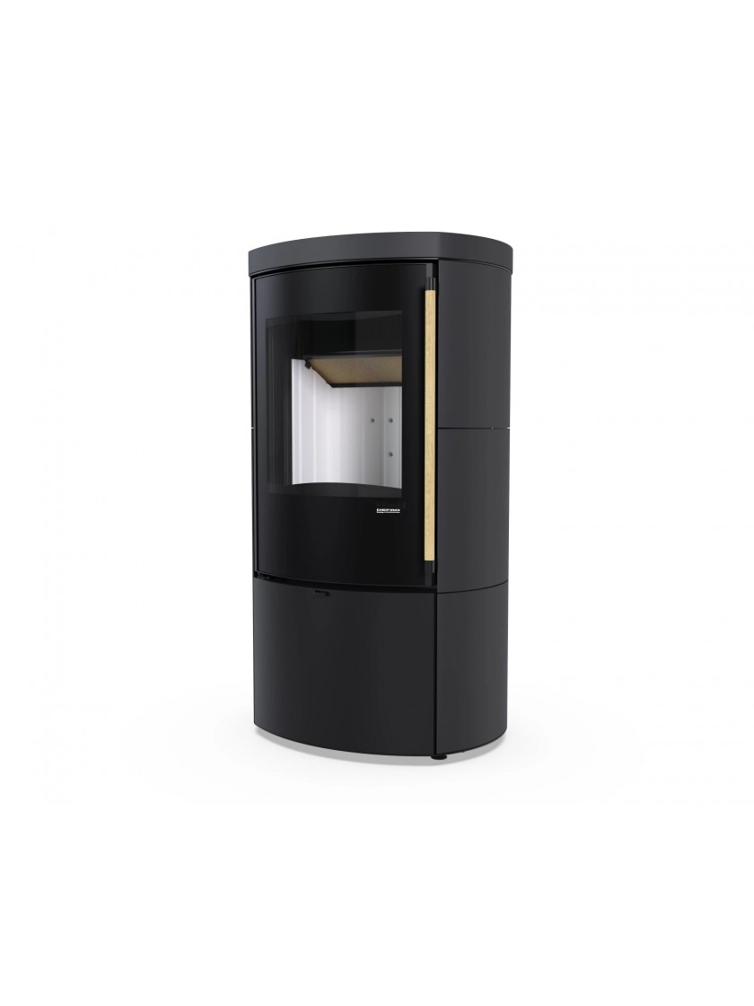 - Овальна форма печі з керамічним покриттям та компактна камера згоряння роблять її чудовим вибором для енергоефективних будинків.