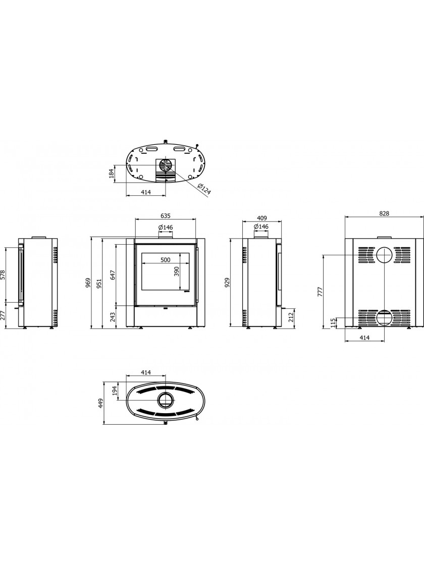 - Високоякісне керамічне скло з трафаретним друком, стійке до 750 °C - Black Line.