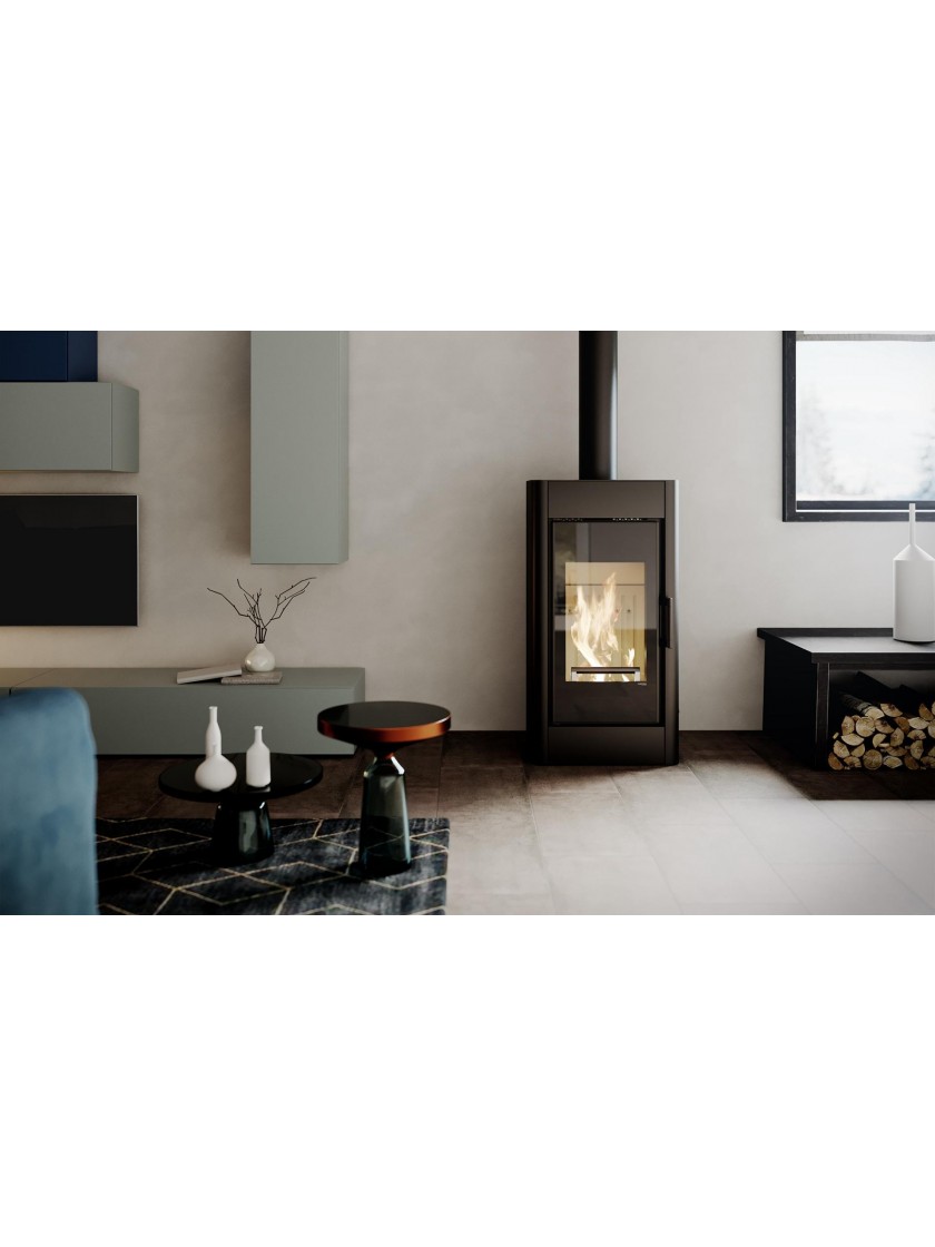Окремостояча дров’яна піч SOLUM вирізняється елегантністю та функціональністю. Пряме скло надає їй сучасного вигляду та дозволяє насолоджуватися полум’ям у всій його красі. Міцна сталева конструкція поєднує естетику з довговічністю, а компактна та лаконічна форма робить піч ідеальним вибором для інтер’єрів із вишуканим стилем. Форма печі - чудове рішення для тих, хто шукає компактну модель, особливо у приміщеннях із обмеженим простором.