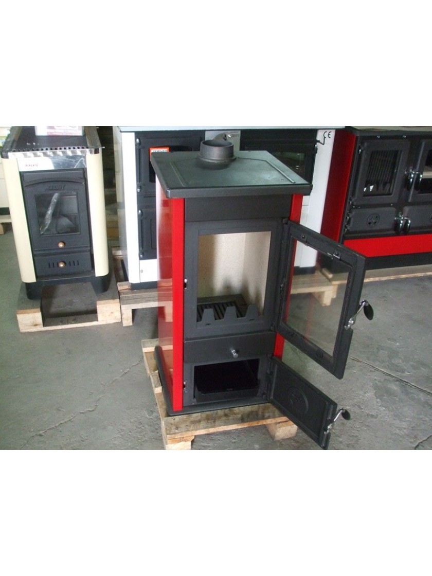 Дверці багнисті мають високоякісне термостійке скло німецького виробництва. Піч також має ящик для золи, який легко висувається. Дверці зольника оснащені пристроєм точного регулювання подання повітря до паливної камери. Піч до димаря можна підключати за допомогою патрубка.