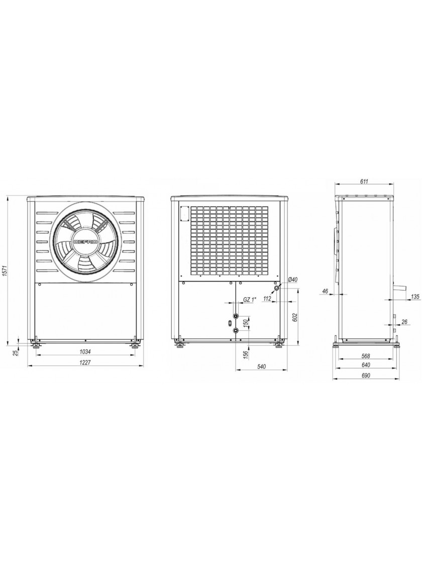 - У комплекті гідромодуль, оснащений перемикаючим клапаном ГВП/ЦО, циркуляційним насосом, керуючим модулем, електричним нагрівачем потужністю 6 кВт для підтримки роботи теплової помпи в екстремально низьких температурах.