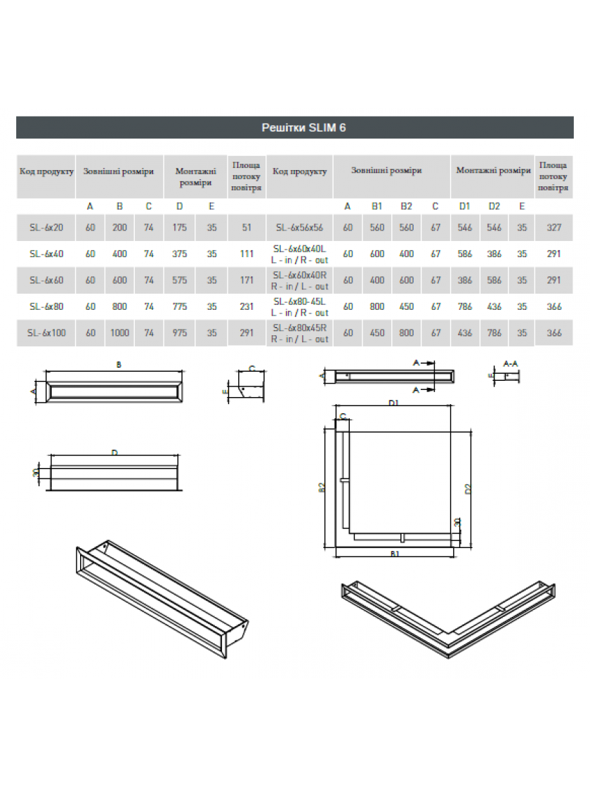 Вентиляційна решітка HITZE SLIM 6X80X45 ліва