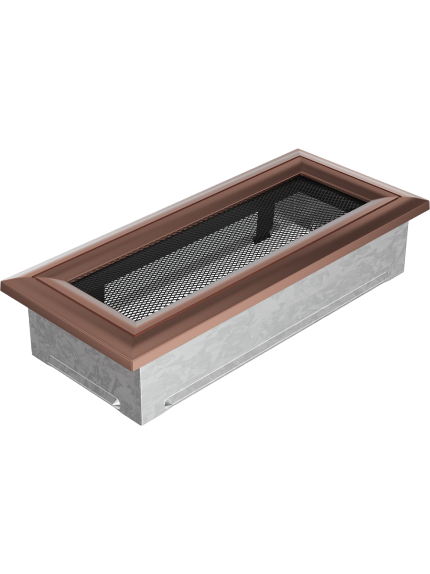Рамка решітки відливається зі сплаву цинку і алюмінію,а потім отримує гальванічне покриття, набуваючи після цього мідного забарвлення.Захист фіксує колір і захищає решітку від дії високої температури.