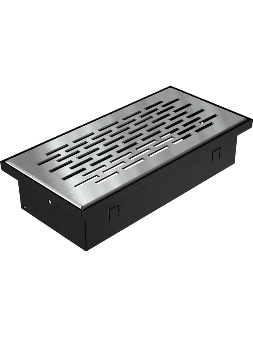 Зміцнена конструкція решітки забезпечує стійкість до натискання, а верхня панель, виготовлена зі шліфованої нержавіючої сталі, гарантує витривалість на стирання і корозію.