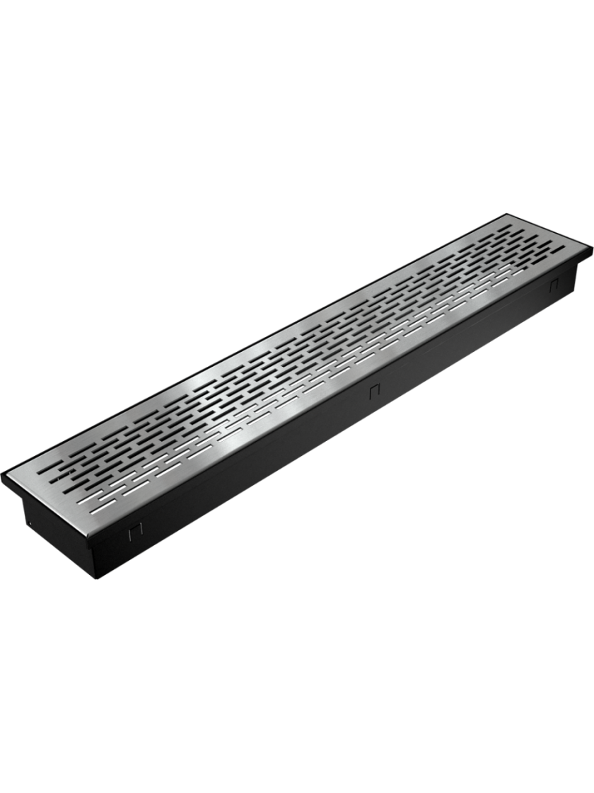 Зміцнена конструкція решітки забезпечує стійкість до натискання, а верхня панель, виготовлена зі шліфованої нержавіючої сталі, гарантує витривалість на стирання і корозію.