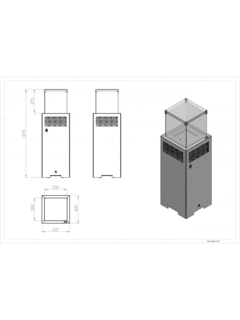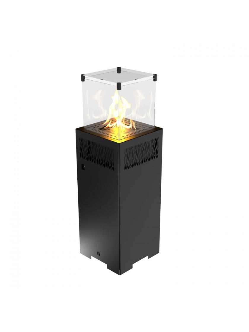 Модель газового обігрівача FUENTE Q вирізняється класичним дизайном. Ті, хто цінує прості форми та лаконічну геометрію, обирають саме це рішення. Камера згоряння виконана у формі куба. Над нею розміщено скляні панелі - своєрідний куб із загартованого скла, який захищає топку від вітру та дощу з чотирьох сторін і зверху. Інтуїтивно зрозумілі елементи керування дозволяють легко налаштовувати роботу пристрою без спеціальних технічних знань, тому користування обігрівачем приносить максимум комфорту.
